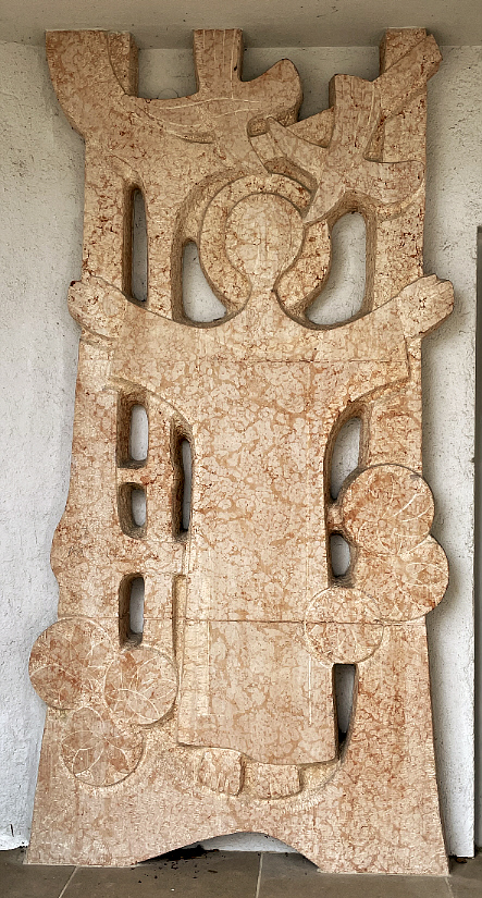 Trientiner Marmor li: St. Meinrad mit Friedenstauben 170 x 350 cm re: Anbetung der Maria mit dem Jesuskind 120 x 200 cm